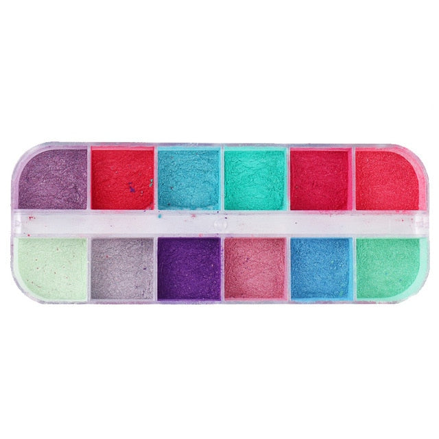 12 Colors/Box Fluorescent Neon Pigment Eye Shadow Makeup Palette Glitter Shimmer Eyeshadow Face Body Nail Art Cosmetics Tools